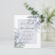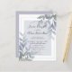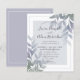 Bonito design de casamento, com folhagem roxa e verde com uma camada azul empoeirada. Moderno e elegante, este é o convite perfeito para você personalizar.