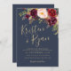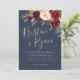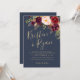 A adorada suíte Lucy combina um lindo marinho da meia-noite com o texto de ouro mate e os florais de marsala.