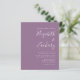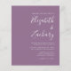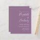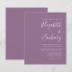 Este simples convite de casamento moderno apresenta um texto branco sobre um fundo mauve. Adicione os nomes da noiva e do noivo na caligrafia de escrita manual do na moda e os detalhes na fonte sans serif. O reverso é uma sombra de massa sólida correspondente. NOTA: os envelopes não são incluídos automaticamente nestes convites de orçamento, portanto lembre-se de escolher a opção "envelopes brancos"!