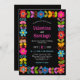 Negrito e vibrante, este convite para o casamento mexicano moderno apresenta um fundo negro impressionante, lindamente contrastado por um quadro floral colorido pintado pela mão inspirado pela tradicional arte popular mexicana. Matizes ricos de vermelho, amarelo, rosa, laranja e turquesa florescem ao redor da fronteira, criando um design festivo, mas elegante. As flores vívidas enquadram a área central de texto, fazer os detalhes de sua celebração se destacam com sofisticação e talento cultural. Perfeito para um casal que procura infundir o seu casamento com uma cor alegre e elegância moderna enraizada na tradição.