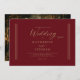 Um simples fundo vermelho-escuro minimalista com três linhas simples em cada lado ainda consegue emprestar um pano de fundo dramático a esta design de ocasião moderna do "Casamento". O texto e as linhas estão em um ouro antigo e arenoso. O verso apresenta sua foto como fundo. O texto do script só pode ser modificado pelo designer. Basta adicionar seus nomes, detalhes de casamento e foto para completar. Design composto por Holiday Hearts Design (direitos reservados).