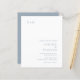 Convite para casamento de orçamento moderno com um layout simples e minimalista com seu monograma no canto superior esquerdo e seus detalhes de casamento no canto inferior direito. Todos os elementos de design estão em azul empoeirado sobre um fundo branco e podem ser alterados na ferramenta de edição de design. Este convite de casamento chic com um design mínimo, mas elegante, vai bem com qualquer estilo de casamento contemporâneo.