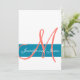 Coral e Blue Modern Wedding Invitation com seu monograma e nomes em um design simples, mas elegante. ELKE CLARKE © para a Galeria de Monogramas. (Código de cor hexadecimal 0086a7). Mostrado no white paper básico. Outras combinações de cores disponíveis a pedido