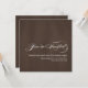 Convites para Casamento Moderno Elegante Dark Brown com texto de script branco junto com fonte branca moderna para informações sobre o convite para o casamento. Os convites têm uma foto de textura de papel escura, impressa em ambos os lados para um efeito 3D. Design de Elke Clarke © 2010. Personalize com suas iniciais, nomes e texto de informações de casamento. Para obter mais sofisticação, escolha entre uma variedade de papéis especiais também. Mostrado em papel branco comum.
