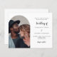 Um convite para casamento de fotos Na frente: adicione o seu dentro de foto de tamanho vertical ao quadro de fotos de arco. Um fundo branco chic, texto preto. Modelos para nomes e data. Voltar: você pode adicionar mais texto se quiser. Vá para a ferramenta design e adicione a camada traseira. 1 folha = 1 convite impresso de borda a borda.