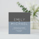 Um convite para casamento moderno de safira e aço azul com um campo de texto modelo no verso para você adicionar todos os seus detalhes adicionais. Para itens correspondentes, o personalizado edita o Designer de contato LeahG. Muitos tipos de estoque de cartão disponíveis, inclusive texturizados, visualize a lista para garantir sua completa satisfação.