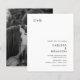 Convite para casamento de orçamento moderno com um layout simples e minimalista com seu monograma no canto superior esquerdo e seus detalhes de casamento no canto inferior direito. O fundo tem sua foto favorita. Todos os elementos de design estão em preto-e-branco e podem ser alterados na ferramenta de edição de design. Este convite de casamento chic com um design mínimo, mas elegante, vai bem com qualquer estilo de casamento contemporâneo.