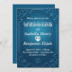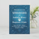 Um convite romântico, em uma cor turquesa transparente, com palavras prateadas, apresentando um impressão elegante e um novo olhar para o anúncio do casamento.