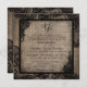 Lace preto elegante sobre fundo de burlap grunge com um cartão de convite para casamento monograma elegante e moderno de gótico.