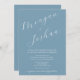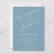 Ponha o tom para o seu primavera romântico ou casamento de verão com este elegante convite de casamento azul empoeirado. Apresentando um layout limpo e uma tipografia de script fluente para os nomes dos casais, essa design oferece uma estética moderna e minimalista com um toque sazonal suave. Perfeito para casamentos com uma paleta de cor azul muda, este convite é totalmente personalizável para o seu dia especial. Par com placas RSVP, menus e artigos de papelaria para um pacote coeso.