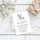 Personalize este convite de casamento elegante usando seringas e iniciais. Inclua os detalhes do seu casamento abaixo em letras negras refinadas e modernas. Este clássico design preto e branco é uma bela opção para casamentos formais durante todo o ano.
