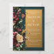Bela buquê de burgundy e creme de flores misturadas a verdes que cercam fontes modernas feitas em branco sobre um fundo elegante e profundo de ouro falso foram usadas para criar este convite de casamento moderno. Perfeito para qualquer casamento. Coordenando o verso verde. Absolutamente espantoso!