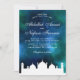 Amaze seus convidados com este elegante convite de casamento do tema árabe apresentando uma bela ilustração da mesquita contra um fundo de galáxia azul e verde. Basta adicionar os detalhes do seu evento neste modelo fácil de usar para torná-lo um convite de tipo único.