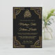 Amaze seus hóspedes com este convite de casamento do tema árabe que apresenta uma elegante fronteira ornamentado e o 'Bismillah' na caligrafia árabe contra um fundo negro. Basta adicionar os detalhes do seu evento neste modelo fácil de usar para torná-lo um convite de tipo único. Sacudir a placa para revelar um lindo triângulo dourado na parte traseira da placa. Este convite é totalmente personalizável. Todos os textos são editáveis e a cor de fundo pode ser facilmente alterada para quais melhores ajustados você pode fazer.