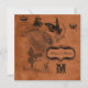 Nosso convite de casamento quadrado para o Casamento do Jardim das Fadas, de 5,25 x 5,24", apresenta um design de cor laranja e preta com fadas, flores, coroa, borboletas e áreas onde você pode adicionar facilmente suas informações de cerimônia de casamento.