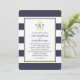 Projetado para um casamento temido náutico, este convite apresenta riscas marinhos e brancas com âncora de ouro e monograma da noiva e do noivo. Edite o texto do exemplo com os detalhes do casamento. Você pode adicionar ou remover linhas de texto conforme necessário para adequá-lo ao seu estilo e preferências pessoais.