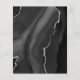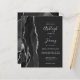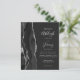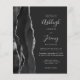 A borda esquerda deste elegante convite de casamento moderno apresenta uma coloração aquosa preta e borda agitada com falso brilho prateado. O texto personalizável combina manuscrito, fontes em copperplate e itálico em cinzas prateadas leves em um fundo fora do preto. O verso apresenta um design de agata preto e prateado correspondente.