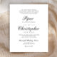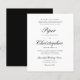 Este convite formal de casamento clássico apresenta o texto tradicional em uma elegante escrita cursiva preta e fontes pequenas em um fundo branco. O reverso é preto sólido.