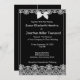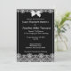 Lace branco elegante e um fundo negro fazem este convite de casamento se destacar. Um arco (gráfico) branco está no topo. Do lado de trás está um pingente de rendas. Adicione seus detalhes de casamento com o modelo fácil de usar. Alguns gráficos de encantadores