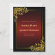 Convite luxuoso com fundo preto e vermelho e quadro de ouro gravado com flores e folhas. Este elegante modelo de convite para casamento, tipo real, é perfeito para convidar convidados. Basta inserir os detalhes de seu evento nesta modelo para criar um convite único.