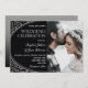 Entra num mundo de luxo com o nosso convite de casamento de deco-art, adornada com uma incrível estrutura floral de folha de prata contra um pano de fundo de preto elegante. Este design moderno, mas inspirado na vintagem, exalta elegância e sofisticação. Personalize o seu convite com uma fotografia personalizada e iniciais de monograma colocadas discretamente no verso, adicionando um toque de charme pessoal a esta peça requintada. Elevem sua celebração com um convite que captura a essência da beleza e do luxo do eterno.