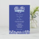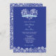 Flocos de neve brancos arranjados em forma de um coração sobre um majestoso fundo azul fazem desta elegante e moderna suíte de convites para casamento um destaque. Um padrão de flocos de neve nas costas adiciona um toque caprichoso. Faça-o por você, adicionando seus detalhes de casamento nos espaços fornecidos. Esta design é perfeita para o inverno e casamentos de férias.