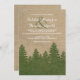 Este convite de casamento no inverno rústico apresenta um fundo de aparência de burlap com uma floresta verde de pinheiros-burlap. Perfeito para o seu casamento no inverno temático rústico ou vintage.