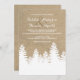 Este convite de casamento no inverno rústico apresenta um fundo de aparência de burlap com uma floresta de pinheiros brancos esmaecida. Perfeito para o seu casamento no inverno temático rústico ou vintage.