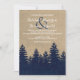 Este convite de casamento no inverno rústico apresenta um fundo de aparência de burlap com uma floresta de pinheiros marinho azul-burlap. Perfeito para o seu casamento no inverno temático rústico ou vintage.