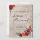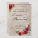 Elegante e romântico, com rosas vermelhas e madeira rústica, perfeito para o seu convite de casamento no inverno de Natal