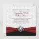 Um belo e elegante tema de inverno para estes convites de casamento personalizados, com um fundo sutil de damas de cinza com um falso, rico arco vermelho, sedoso e floco de neve metálico prateado.