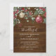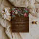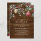 Convites de casamento no inverno russos com fundo de madeira, florais e folhagem festivos de aquarelas, borbulhas de xmas vermelho e ouro, e um elegante modelo de casamento que é fácil de personalizar.