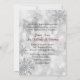 Adorável convite de Casamento no inverno feito em um fundo branco e bobo. Bonita luz de tom prateado com aparência de flocos de neve decoram a frente e o verso do convite, com uma fita vermelha escura, na parte de trás. Personalize todo o texto para o seu dia especial. Produtos correspondentes disponíveis.