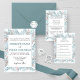 A Elegância encontra-se reluzente no nosso Convite para Casamento de Snowfall Ferns, onde a delicada cor d'água verde em tons serenos de azul de nevão, jato e rosa antiga é lindamente enquadrada dentro de uma fronteira tradicional. Esta design encantadora traz a magia das paisagens geladas do inverno para a sua papelaria de casamento, dando o tom para uma celebração romântica e inesquecível.
