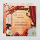 Um convite romântico de casamento com flores coloridas num passado clássico mediterrânico com uma lanterna e folhas de outono. Este convite tem placas RSVP correspondentes. Bonita para um casamento outono.