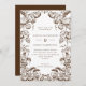 Um casamento outono elegante com um quadro de abóboras e folhas desenhadas à mão em castanho. Personalize com seus detalhes.