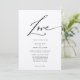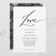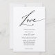 Amor, Convite Para Casamento De Caligrafia Moderna. Este simples convite de casamento preto-e-branco apresenta uma caligrafia orgânica na moda com letra elegante para texto. Uma escolha ideal para casamento simples e moderno temido em todas as estações. Também disponível com RSVP de caligrafia moderna, detalhes do casamento, programa e muito mais na coleção de núpcias de caligrafia moderna.