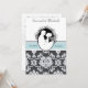 Nosso convite personalizado de casamento personalizado para o primeiro beijo, 5 horas por dia, 7 dias por semana, apresenta um novo marido e esposa prestes a se engajar no primeiro beijo. Uma cinza e um fundo branco com banda azul-mar e texto que diz "ele pediu...eu disse sim" e áreas onde você pode adicionar seus detalhes de cerimônia e recepção em um convite de casamento totalmente personalizável e único.