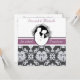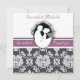 Nosso convite de casamento personalizado do primeiro beijo mostra um novo marido e esposa prestes a se engajar no primeiro beijo deles. Uma cinza e um pano de fundo branco com uma banda roxa e um texto que diz "ele pediu...eu disse sim" e as áreas onde você pode adicionar seus detalhes de cerimônia de casamento e recepção em um convite de casamento único e de classe totalmente personalizável.