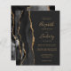 A borda esquerda deste elegante convite de casamento moderno apresenta uma coloração aquosa preta, borda agitada, aparada com falso brilho dourado. O texto personalizável combina manuscrito dourado, fontes em copperplate e itálico em um fundo fora de preto. O verso apresenta um design de agate preto e dourado correspondente.