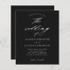 Um convite de casamento simples e chic azul marinho com detalhes elegantes de caligrafia e texto clássico. Clique no botão editar para personalizar este design.