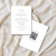 Moderno e eterno, este convite de casamento preto-e-branco combina elegância com conveniência. Apresentando um código QR para RSVPs fáceis, ele combina estilo e praticidade. Perfeito para casais que buscam uma forma amigável e econômica de convidar pessoas amadas para o seu dia especial.