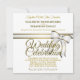 Este belo convite para o casamento apresenta uma design de texto dourado sobre fundo branco com fitas brancas com dourado. O dorso tem fitas brancas e douradas e arcos que separam a folha falsa dourada no topo de cintilações de boque dourado no fundo. Este belo e rico convite é formal e casual. Todo texto é personalizável.