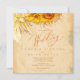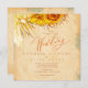 Girassóis Quentes e capim iluminado em fundo texturizado. Arranjo córneo de aquarela e de girassol de tinta no rosto e textura rústica de stuco em ouro mole e ocre no verso. Cores modernas neutras e girassóis ouros com uma redação casual e tema natural.Dimensionado para uma placa plana quadrada.