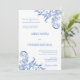 © Socialite Design Inc. Lindos redemoinhos de canto e flores, pintados à mão em cor azul-real suave, convite para casamento. Um convite elegante para o casal comemorando seu casamento em qualquer temporada. Pintado em aquarela por Designs socialitas.