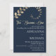 Marinho Azul com sotaque Dourado Convite para casamento Cristão. Um convite de casamento cristão que você pode personalizar para seu dia especial. Também posso fazer design correspondentes a itens para você, por isso, por favor, entre em contato comigo se tiver alguma solicitação ou dúvida. Há um verso de casamento no verso do convite. Você pode mudá-lo para adicionar seu próprio verso se quiser.