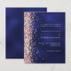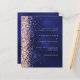 Um fundo azul marinho, a cor azul é irregular. Decorado com rosa dourado confetti. Personalize e adicione seus nomes e detalhes da festa. 1 folha = 1 convite impresso de borda a borda.