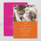 Celebre o seu amor com o nosso convite de casamento chic, cor de laranja vibrante, acentuado maravilhosamente com matizes rosa brilhantes. Apresentando caligrafia moderna, um delicado coração de corda de ouro, e uma foto apreciada, este convite irradia alegria e elegância do eterno. Um código de QR conveniente torna os RSVPs sem esforço e fornece acesso rápido ao seu site de casamento, combinando romance clássico com a conveniência moderna. O ousado fundo laranja quente cria uma atmosfera alegre e elevadora, definindo o tom perfeito para sua história de amor única. Que este belo convite sirva de reflexo da sua jornada juntos, cuidadosamente desenhado para mostrar a profundidade do seu compromisso.