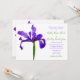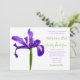 O texto e a cor de fundo deste convite de casamento da íris roxa são totalmente personalizáveis. Para alterar o texto, use a opção personalizar. Para alterações mais abrangentes, como alterações na fonte, cor da fonte, cor do plano de fundo ou layout de texto, use a opção personalizar. Este convite está definido para impressão em papel branco. Ele também parece excelente nos tipos de papel simples e feltro. Você pode alterar o tipo de papel, se quiser, em opções de convite. Embora este convite seja atualmente personalizado para um casamento, poderia ser usado para várias outras ocasiões especiais, como aniversário de casamento, chá de panela, festa de aniversário, festa de jardim, etc. Tudo o que você precisa fazer é mudar o texto.