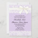 Este convite de casamento elegante e feminino apresenta um fundo de cor púrpura lilás com uma borda de cor branca no topo e na parte inferior impressa e um detalhe de fita branca no topo. Entre em contato conosco para obter cores personalizadas.